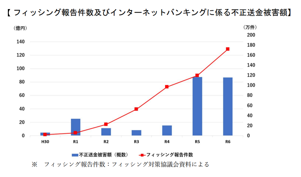 小島さん:はい。警察庁のデータでも、フィッシング詐欺の報告件数は右肩上がりです。特に2023年からは、銀行の不正送金被害額も一気に跳ね上がっています。AIの普及時期と見事に重なっているんですよ。